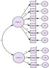 El análisis factorial confirmatorio usando el método de máxima verosimilitud para la estimación del ajuste del modelo muestra un mal ajuste del modelo unifactorial inicial. Se realizó un nuevo análisis, comprobando su adecuación mediante el test de χ2 anidado, obteniendo un modelo de dos factores que tiene un ajuste bueno, con valores de CFI y TLI >0,95, y un RMSEA <0,09 (Tabla 2).