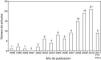 Descripción de los resultados de la revisiónLas fechas de publicación de los 103 artículos incluidos reflejan la relativa novedad y el creciente interés, en los últimos años, por la investigación en el campo de las utilidades en nuestro país (fig. 2). La mayoría de los artículos son estudios observacionales, transversales o longitudinales (59 artículos). Otros diseños identificados fueron: cuatro artículos que describían resultados de encuestas poblacionales, 13 evaluaciones económicas, 14 estudios de validación de cuestionarios, cinco estudios metodológicos y tres revisiones.