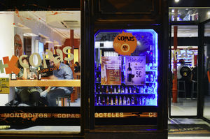 Availability and promotion associated to alcohol retail outlets. A) Availability of alcohol at relatively low prices in convenience stores is common, including in central areas and places popular with tourists such as the Plaza Mayor in Madrid. B) The alcohol industry circumvent existing regulations to promote its products using visible windows in the alcohol retail outlets.