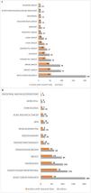 Figure 2 A shows the 91 authors who are part of collaborative networks with more than 5 publications in common. There are 17 different networks, ranging from those formed by only two members to the most participative network with 16 different authors. The most prolific author is Javier A Menéndez, with 38 published papers and he leads the network with the most representatives, Begoña Martín Castillo, and Cristina Oliveras Ferrarós are his closest collaborators with 24 and 18 papers in common.