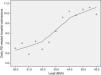 Figure 1 shows the functional relationship between Leqd levels and daily PD-hospital admissions (scatter-plot diagram). As will be seen, the relationship was linear, without any specific threshold. With an r-squared value of 0.826 and an F coefficient of 52.335, linear adjustment was significant at p <0.0001. If, instead of total linear adjustment, adjustment is made using the LOWESS method and 70% of the points, Figure 2 is obtained, from which it will be seen that daily diurnal noise had its greatest effect on emergency PD-hospital admissions at values ranging from 62 to 65 dB(A), i.e., levels lying below the WHO guideline values.